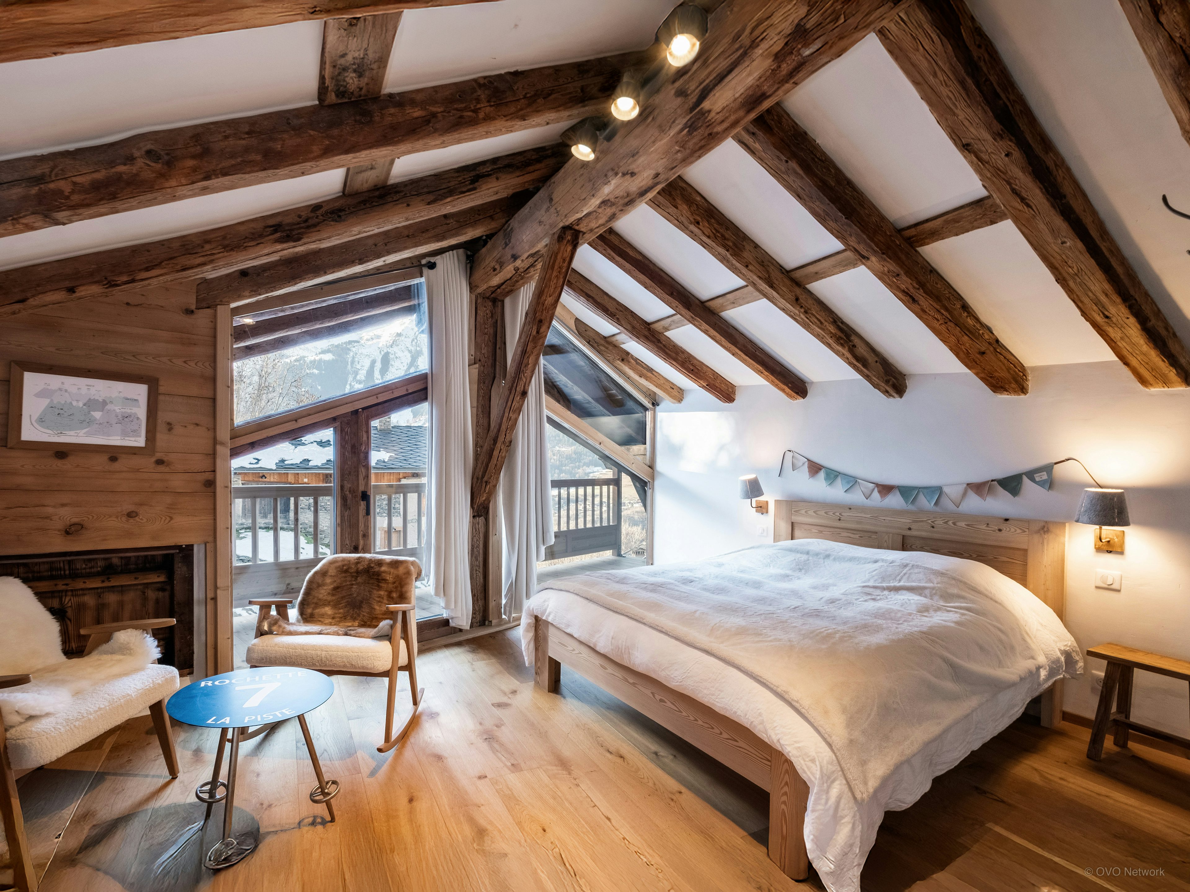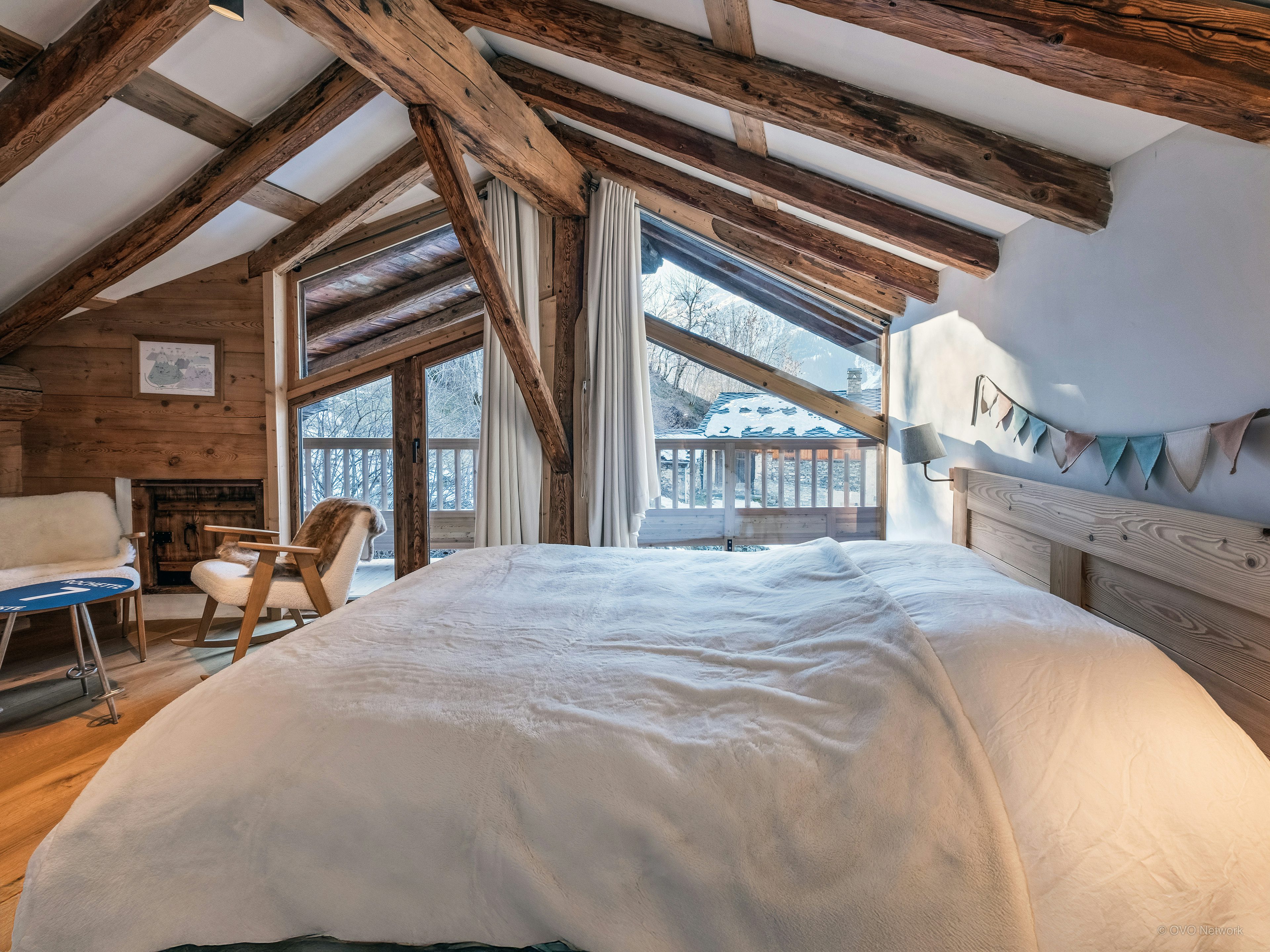 The bedrooms are thoughtfully laid out so everyone can find their own space. With dedicated areas for children, cosy double rooms and a private suite with its own balcony, the chalet easily adapts to every type of group.